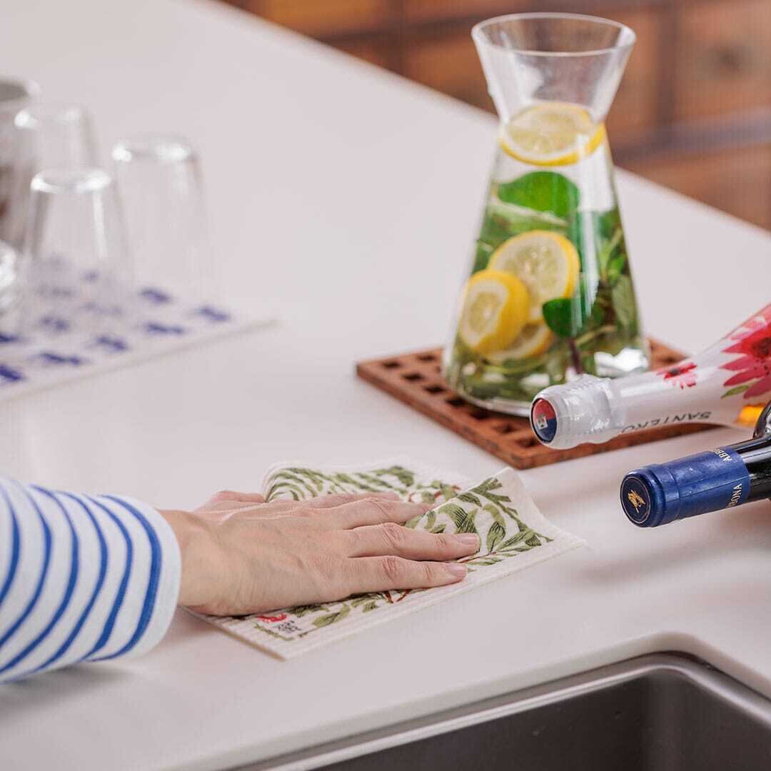 吸水速乾に優れたスポンジワイプはふきん、水切りマットとしてはもちろん、洗面所、お風呂、窓の結露などの拭き上げとして水にまつわる場所で大活躍します。